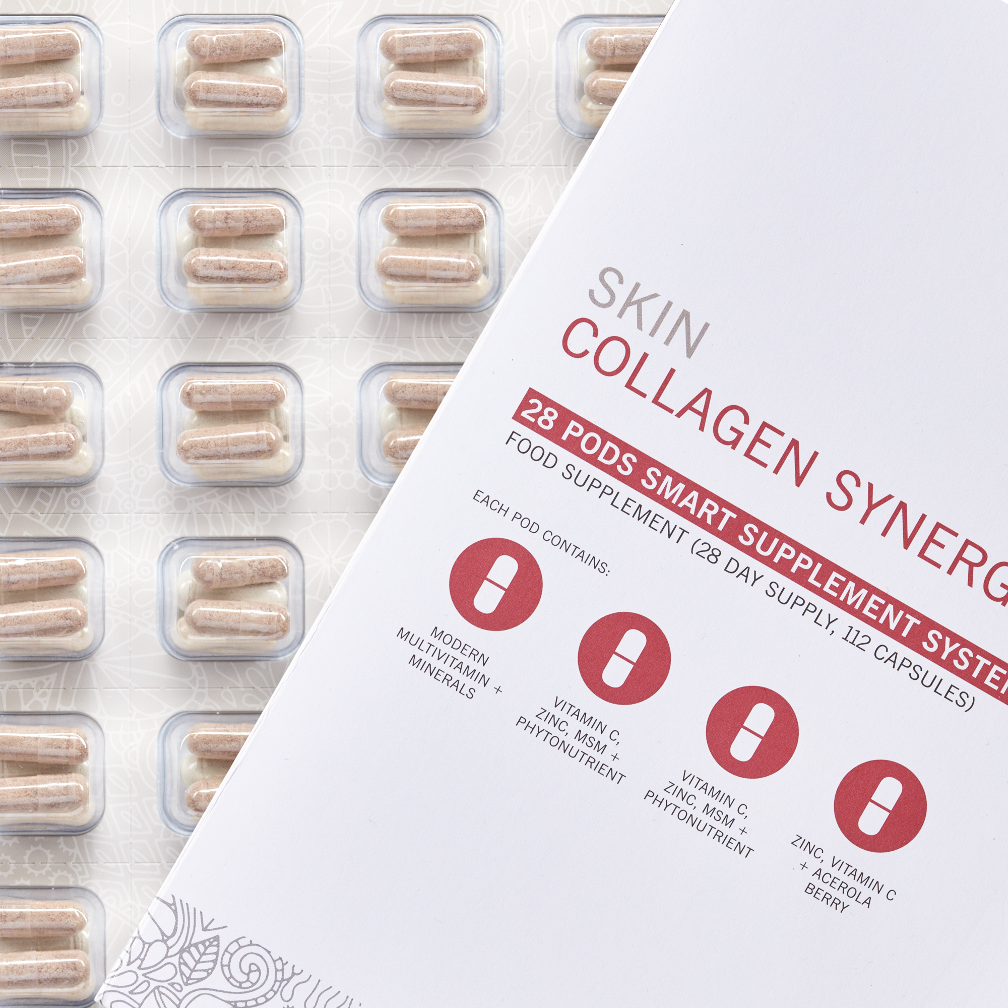 Skin Collagen Synergy is a science-led supplement to help support your own internal collagen formation*, delivering renewed resilience.